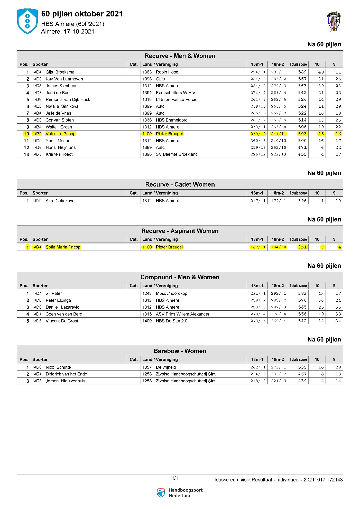 | Almere | 17-Oct-2021 | 6.13 | 5.57 | 5.85 |