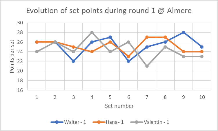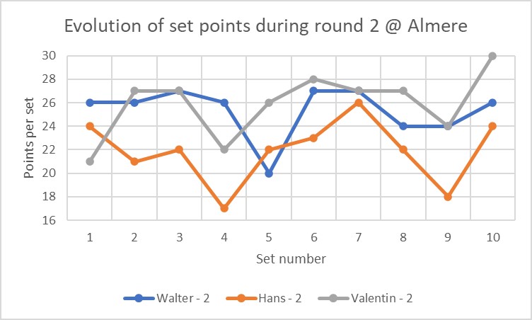 | Plaats | Datum | Ronde 1 | Ronde 2 | Ronde 3 | Gemiddelde |