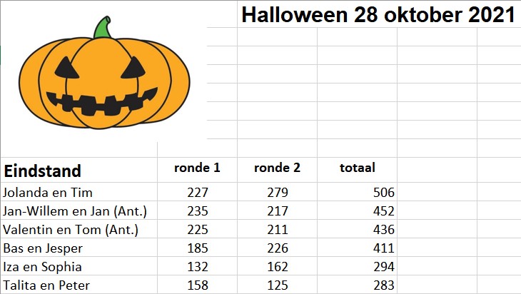 | Groep 1 | Helena | Stephan | John | Jolanda | 1540 |