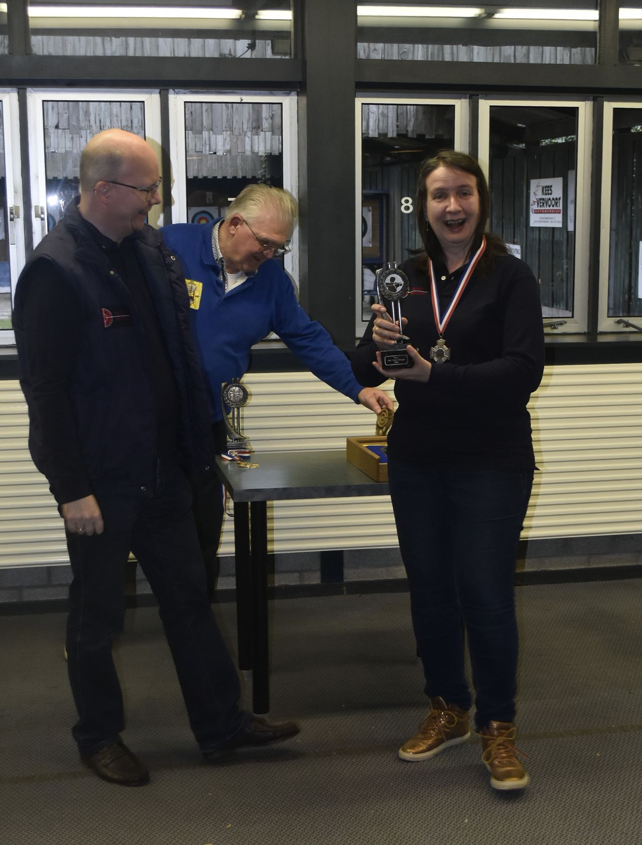 | De medaille winnaars | Het recurve team met beker |