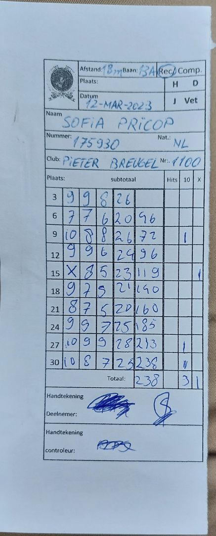 | Recurve | Meisjes <12 j. | Sofia | 1 goud (weinig deelnemers) |